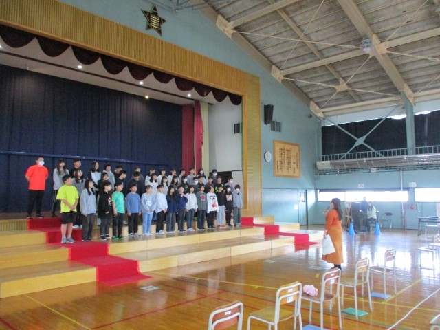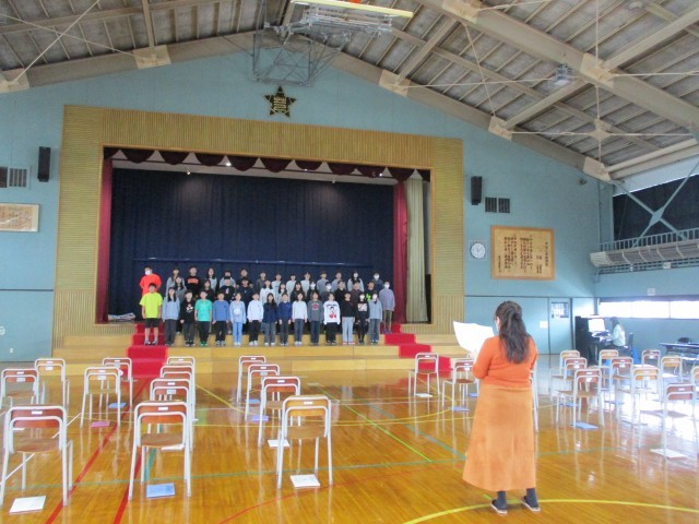 芦別中の音楽の先生が6年生に歌の指導をしている様子です。🎵