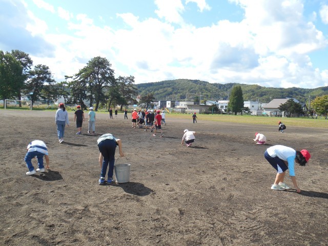 グラウンドや中庭の石やごみなどを拾っています。🗑️
