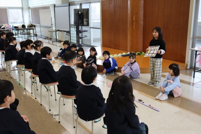 生活科「おもちゃランド」の学習では、自分たちで作ったおもちゃを使い、つばさ保育園やみどり幼稚園の園児と交流の時間を持ちました。昨年度は上芦別小学校に招待された1年生の皆さんが、懐かしい先生方の前で立派にお店屋さんを披露していました。