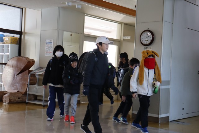 本格的な降雪期を迎えるにあたって、校外班集会を行いました。集会では、冬道の登下校時の歩き方について話がありました。その後、方面ごとに下校しました。