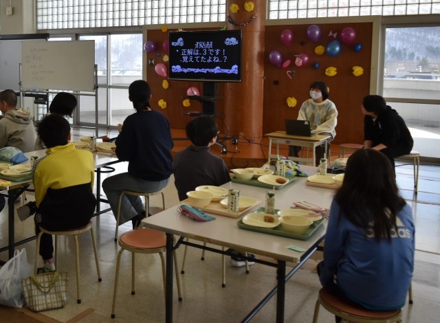 6年生のみなさんが、在校生にたくさんの楽しい思い出をつくってくれました。この日は、大多目的教室で5年生と一緒に給食を食べ、その後は6年生が準備してくれたクイズなどで、和やかで楽しい時間を過ごしました。この後順に、すべての学年と行う予定です。